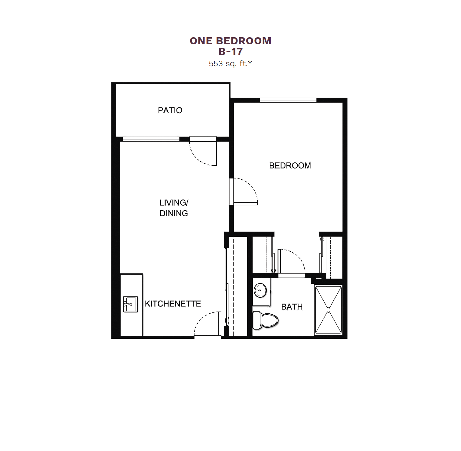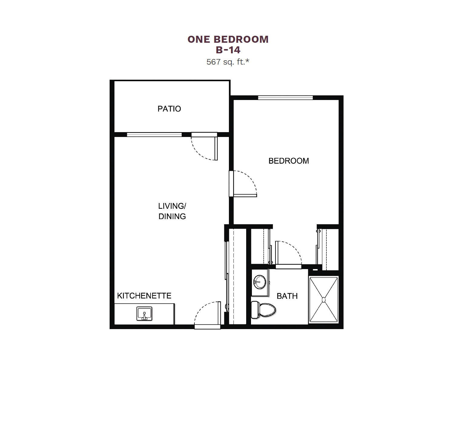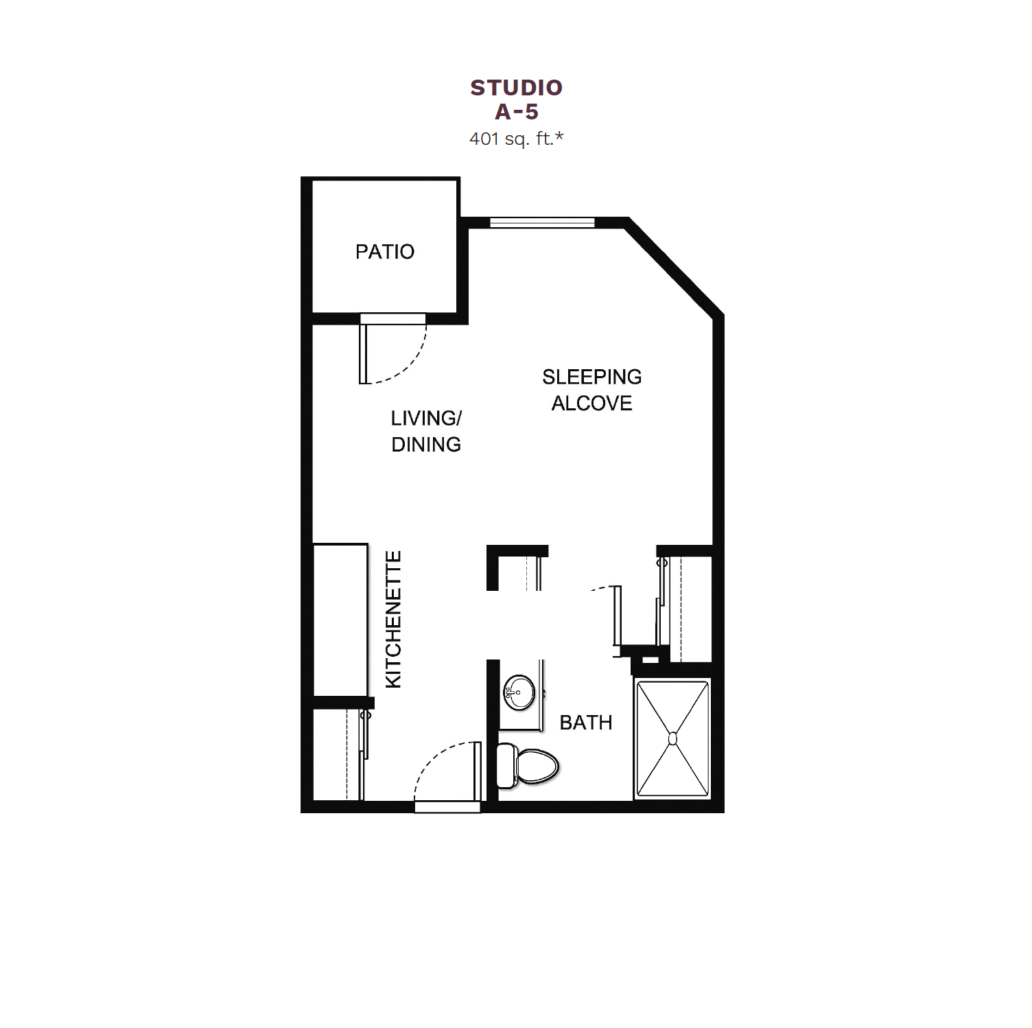 Choice of studio or one- and two-bedroom apartment styles with kitchenettes and choice of patio or balcony